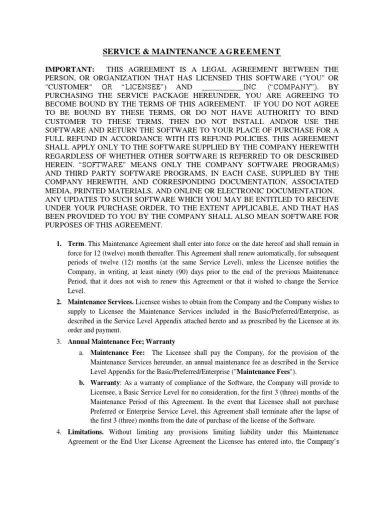 Software Maintenance Agreement Format Download Now;