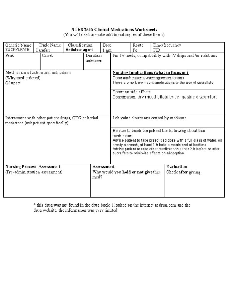 Carafate (Sucralfate) ACTIVE LEARNING TEMPLATES Medication STUDENT