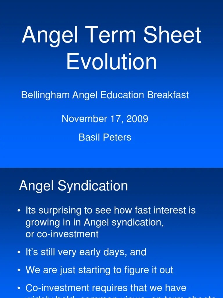 Angel Term Sheet Evolution 20091117 Angel Investor Investor