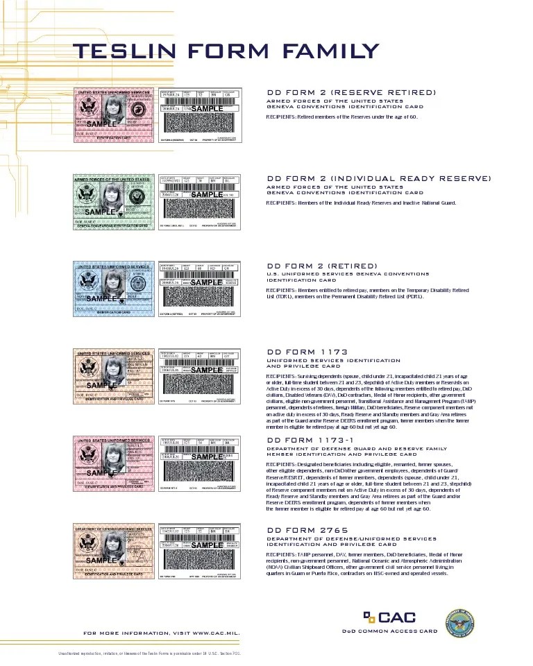 CAC & TESLIN Card Charts PDF Uniformed Services Of The United