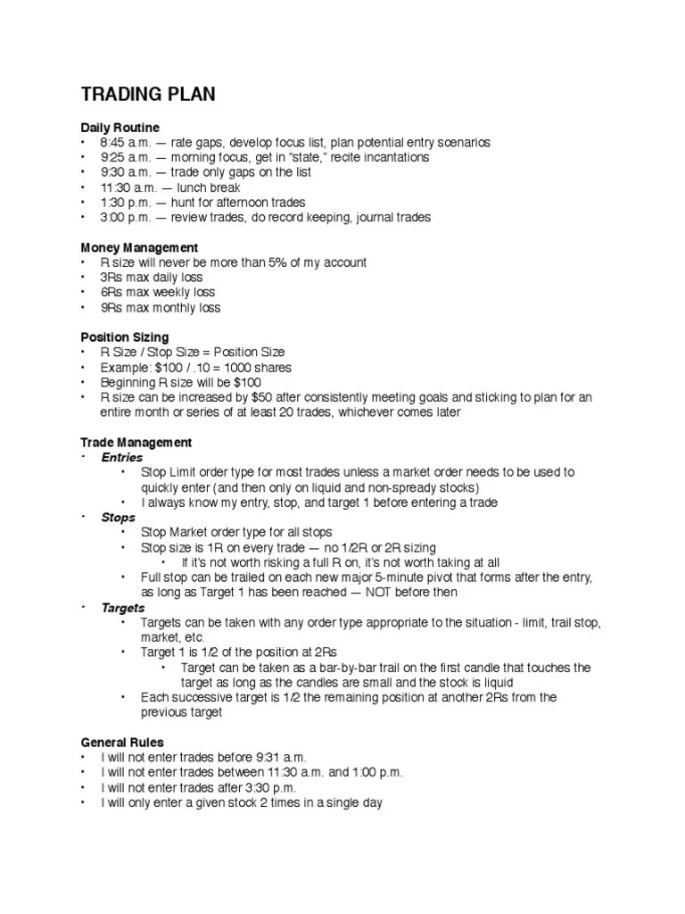 The Ultimate Trading Plan Template for Futures, Forex and Stocks