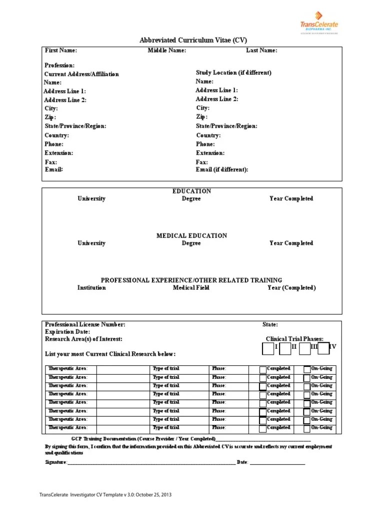 TransCelerateCurriculumVitaeForm.pdf Clinical Trial Health Sciences