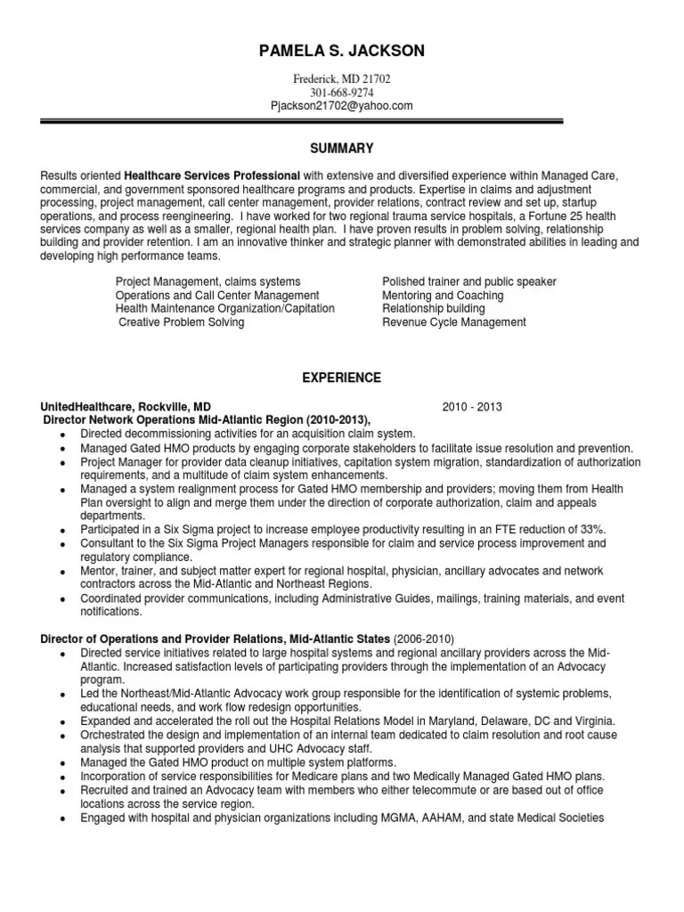 Director Health Care Operations in MidMaryland Resume Pamela Jackson