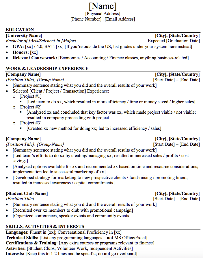 Web rtsws high school resume template (u.s. Web let a real finance professional improve your resume. Download excel (.xlsx), powerpoint (.pptx), and. I like wso's resume template, but there are a few things on it that i am sort of uncomfortable/unsure about. Simple to use, no registration or cc required.