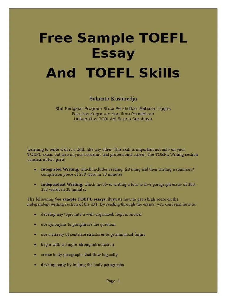 Toefl writing essays examples in 2021 Essay examples, Essay writing
